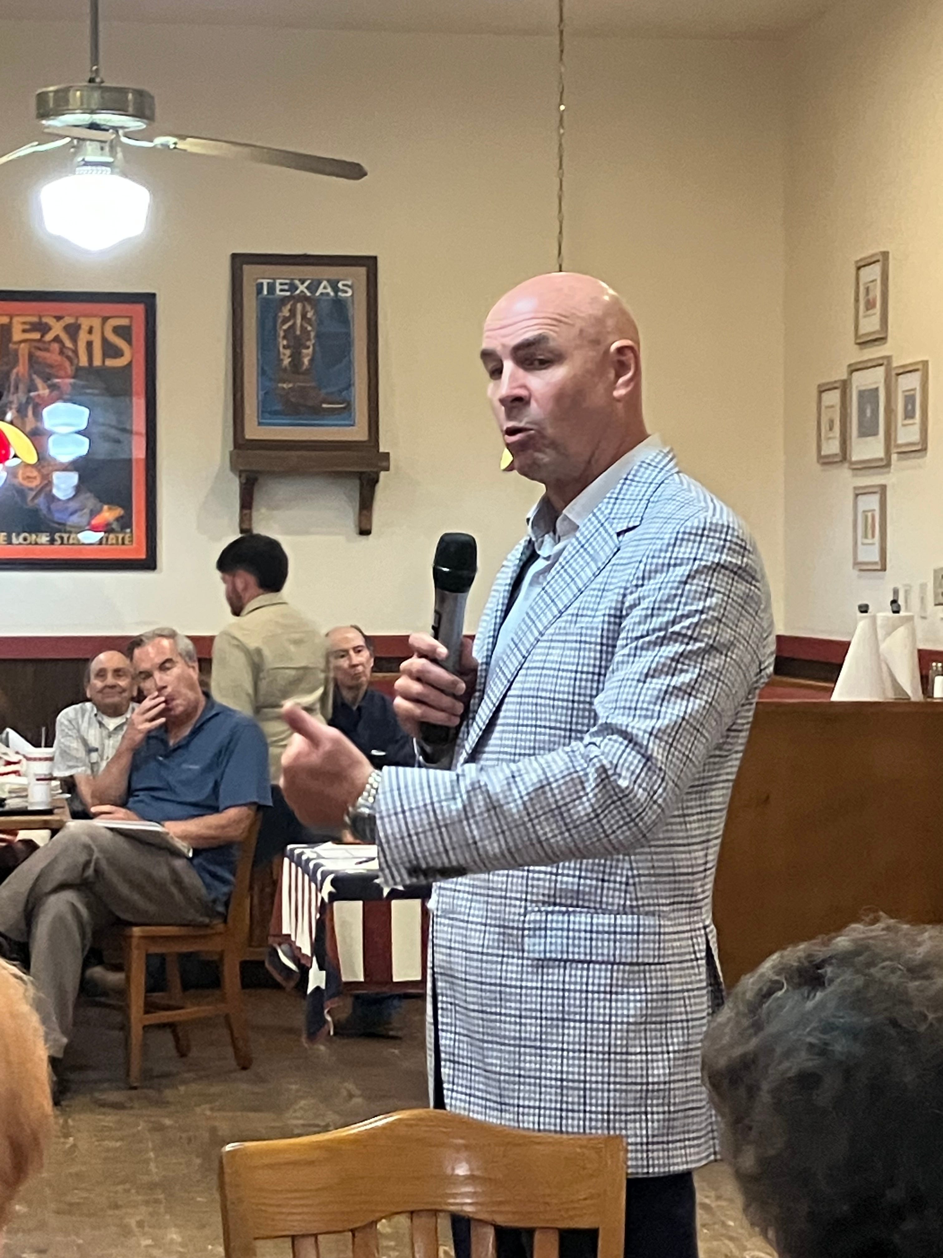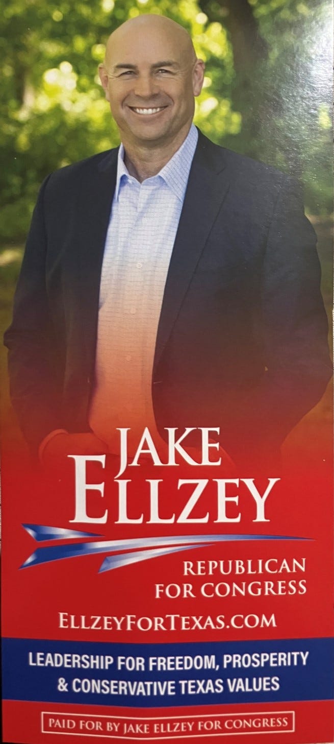 A lot more of Irving is now in CD-6, from 131,000 people to 195,000 people with 46,000 more voters, from 51% to 76% of Irving’s population. Current CD-6 Representative Jake Ellzey needs to introduce himself to those voters. He was not seen much in Irving under the old map, but now he has started showing up, sending block walkers out this summer and doing big events, like he did on November 10 at Grace Pointe Church in Irving. “Irving’s always been a favorite part of my district!”