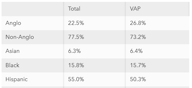 The partisanship margins are wide, aren’t they? The Congressional primary elections are the real election. You can count the competitive seats in all of Texas on one hand. And we wonder why our politics seems so polarized… spoiler alert: it’s because politicians pick voters rather than the other way around. Also, these districts are of a ridiculous size: 766,000 in each of them. You can’t run a campaign without raising a ton of money when districts are huge, so the system is built for the corporate domination of Congress.