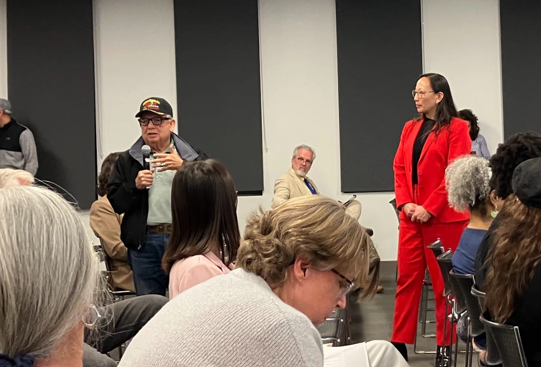 Kudos to her for coming in person and taking questions. There was only one problem.