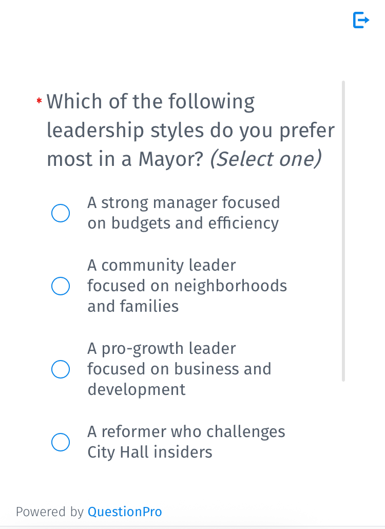 The poll asks for a preference again at the end, “after thinking about the qualities and issues that matter most to you.”